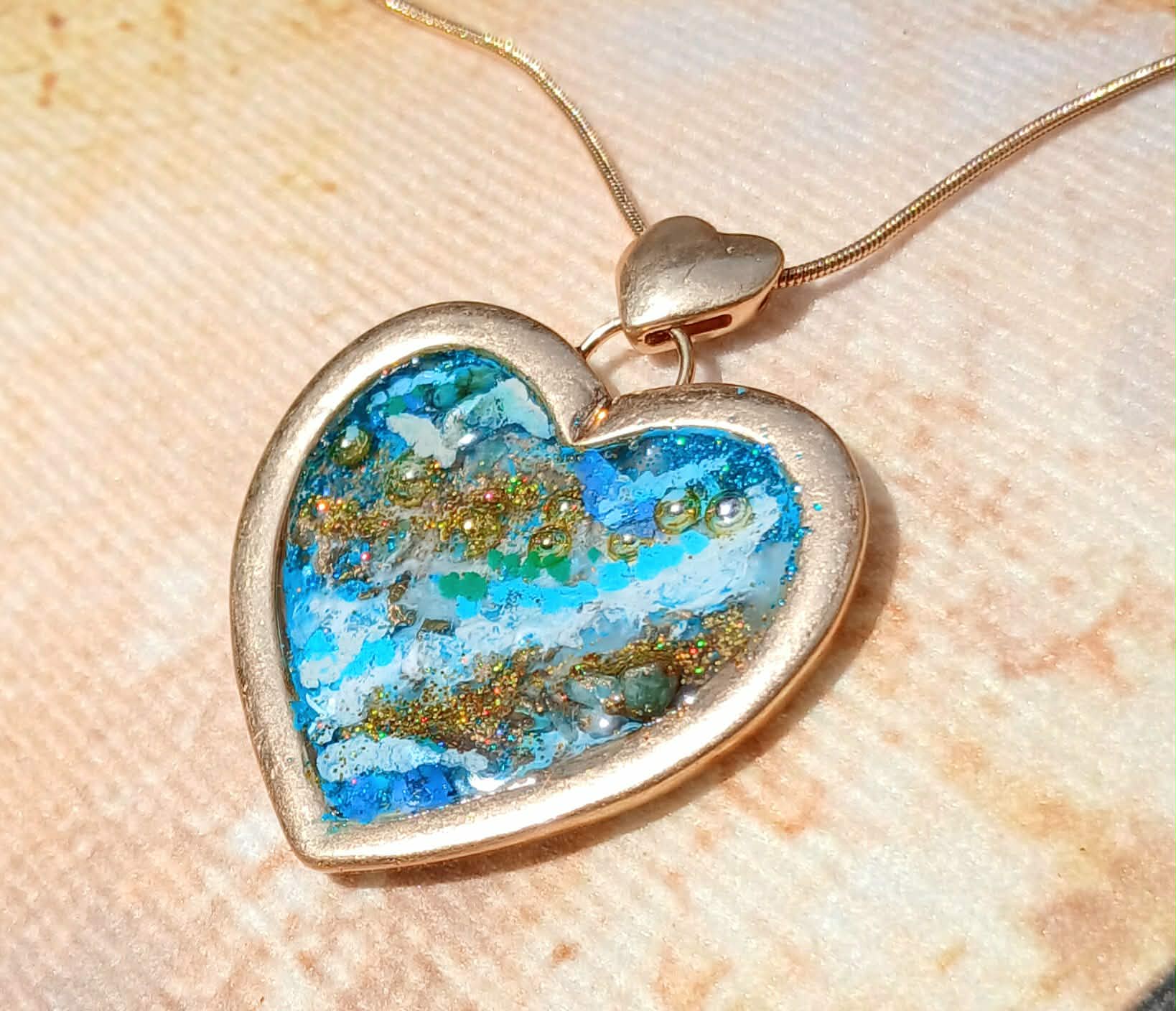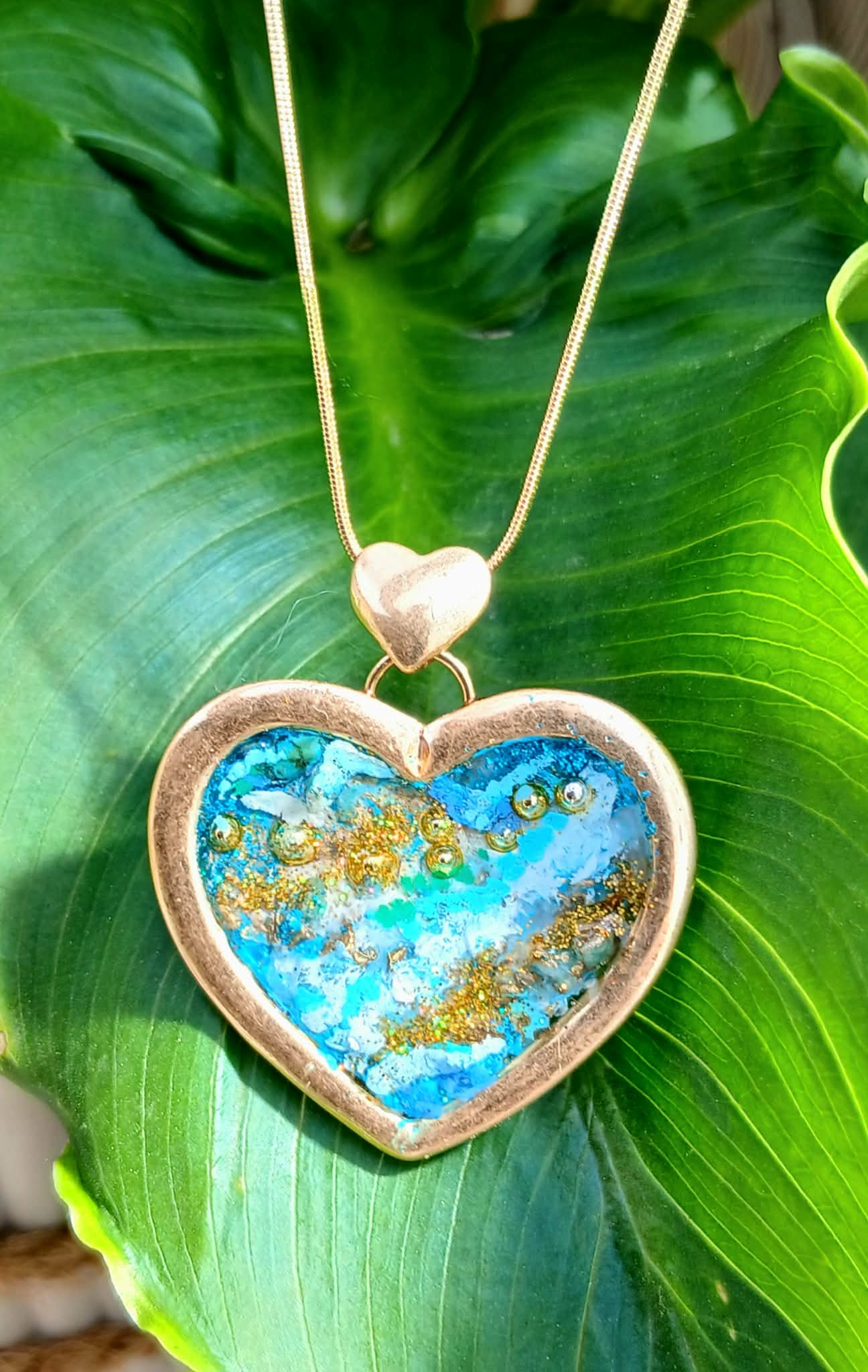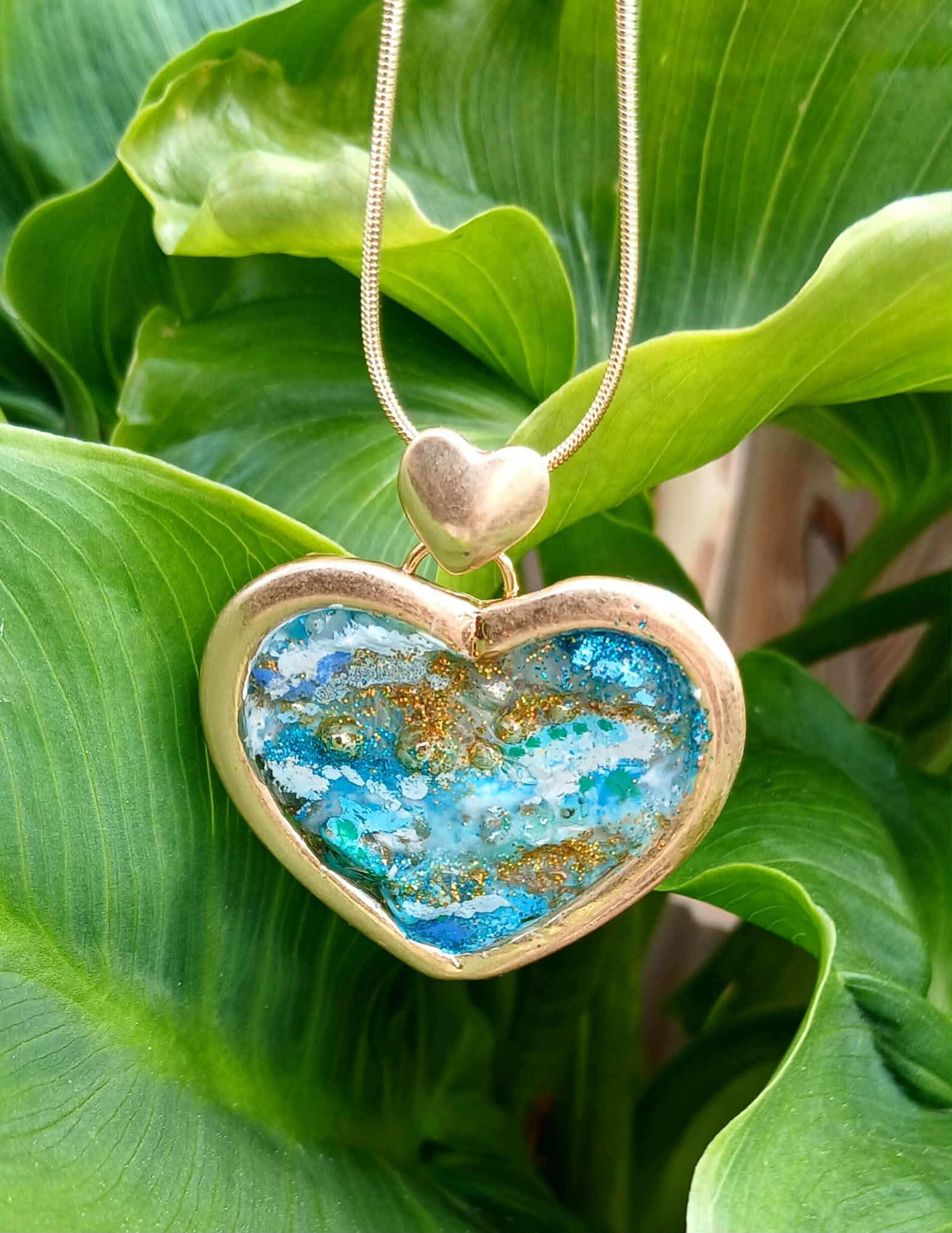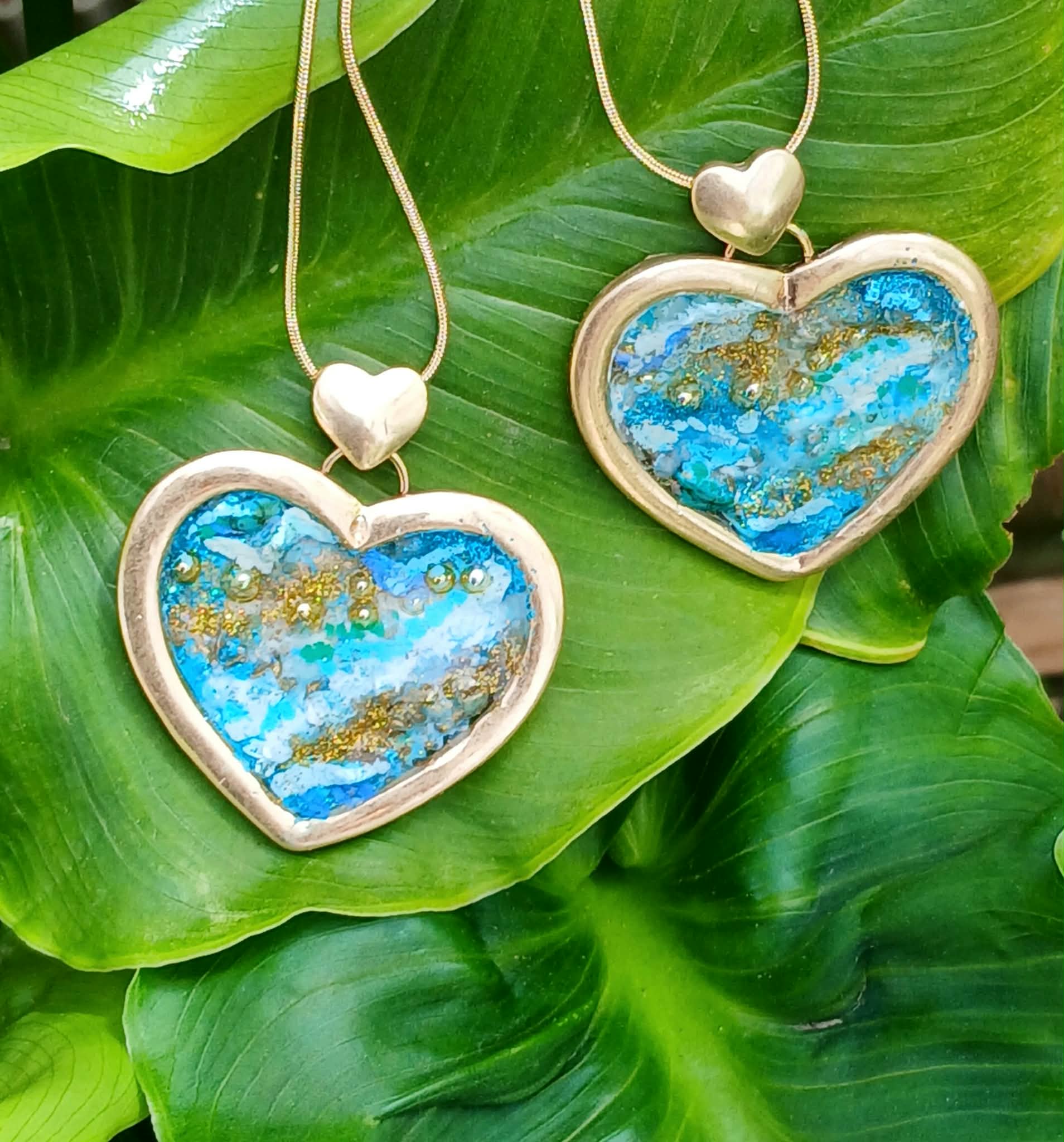 Het zijn krachtige hangers geworden die als een Turkoois kleurige oceaan gedragen kunnen worden.