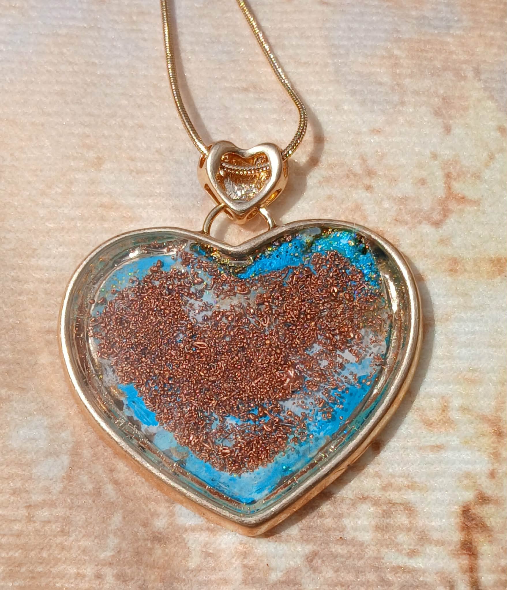 Ik heb deze kleine kunstwerkjes in laagjes opgebouwd, de bodem is vol met kopervezels en mini bergkristallen. Daarna een laagje Turkoois, Amazoniet en bergkristallen.