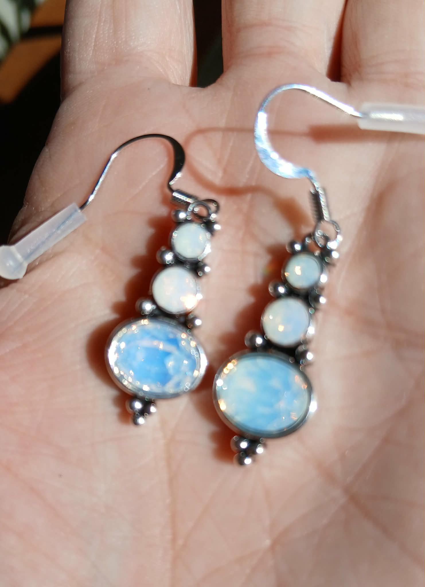 Een verfijnd sieraad met een prachtige sprankeling, vooral als het licht erop schijnt. Deze oorbellen combineren tijdloze schoonheid met de krachtige spirituele frequentie van de Opaliet. Op een subtiele manier weerkaatsen de oorbellen jouw innerlijke schoonheid.