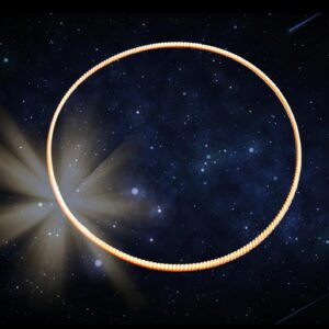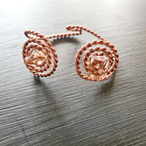 De koperen einden zijn aan mooi aan elkaar gesoldeerd, zo roteert het veld krachtig om en in het kristal.