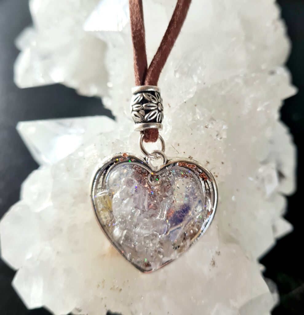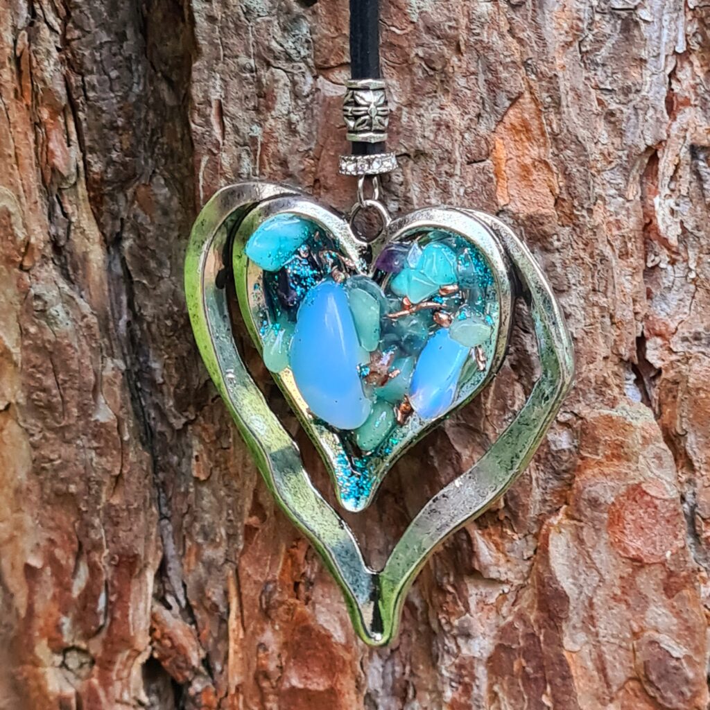 Heart Whisperers zijn bijzondere orgonite hangers, met edelstenen, mineralen, en kopervezels.